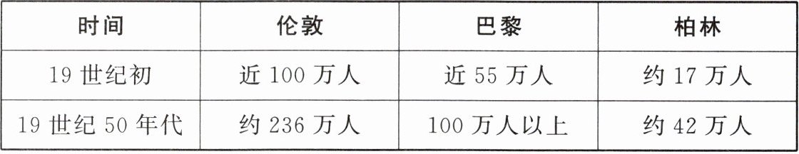 |英国资本从1750年的5亿英镑增长到1865年的60亿英镑,工厂制度逐渐形成;农村人口大量流向城市,到1851年,城市人口已占总人口的54%;全民教育为德国培养了高素质的国民,智力成为这个国家最重要的资源,凭借这一资源,19世纪的德国站在了世界科学技术发展的前沿。——摘编自《大国崛起》解说词|最惊人的变化首推出现了许多以女性为主要从业员的职业:商店和办公室中的职业······女性店员由1882年的3.2万人(总数的20%),增加到1907年的17.4万人(大约是总数的40%)。——摘编自[英]霍布斯鲍姆《帝国的年代:1875—1914》|