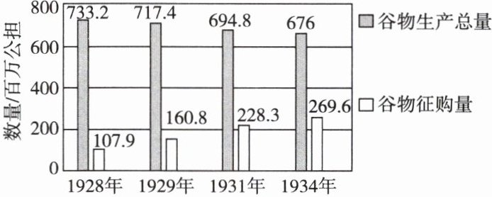 6. 右而为 1928—1934 年苏联谷物生产总量和谷物征购量对比图。以下理解正确的是( )