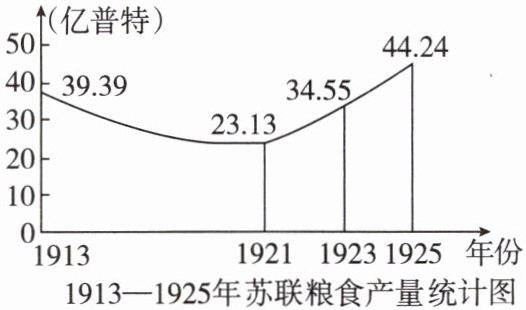 (1)结合所学知识,指出造成 1913—1921 年粮食产量下降的因素。造成 1921—1925 年趋势变化的政策因素是什么?(4 分)