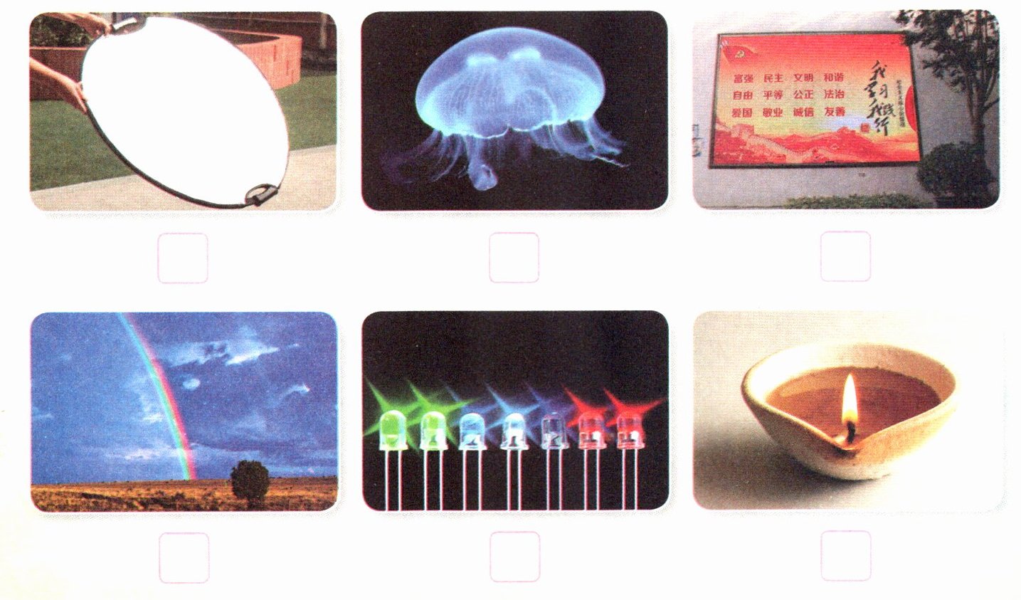 ● 给这些光源分类,是自然光源的在“□”里写“1”,是人造光源的写“2”。