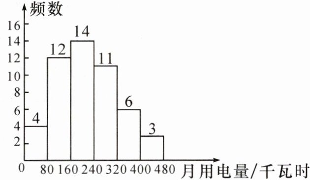 8. 为节约用电,某市根据每户居民每月用电量分为三档电价收费:第一档电价,每月用电量低于240千瓦时,按0.48元/千瓦时收费;第二档电价,每月用电量为240~400千瓦时,按0.53元/千瓦时收费;第三档电价,每月用电量超过400千瓦时,按0.78元/千瓦时收费. 小明同学对该市某小区1000户居民的月用电量(单位:千瓦时)进行了抽样调查,绘制了如图所示的统计图. 则下列说法不合理的是(