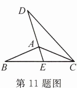 11. 如图,CA平分∠DCB,CB=CD,DA的延长线交BC于点E. 若∠EAC=49°,则∠BAE的度数为