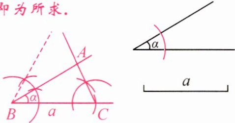 12. 北师大附属实验校本经典题 如图,已知∠α和线段a,用尺规作一个三角形,使其一个内角等于∠α,另一个内角等于2∠α,且这两内角的夹边等于a.