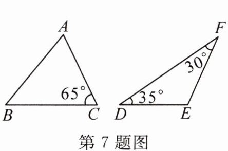 8. 如图所示,BC,AE是锐角三角形ABF的高,相交于点D.若AD=BF,AF=7,CF=2,则BD的长为