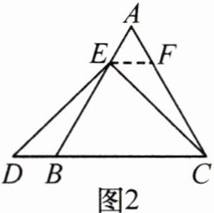 14.北师大附属实验校本经典题如图1,已知在△ABC中,AB=AC,D为CA延长线上一点,且DE⊥BC交AB于点F.(1)求证:△ADF是等腰三角形;(2)如图2,在(1)的条件下,F为AB的中点.求证:DF=2FE.