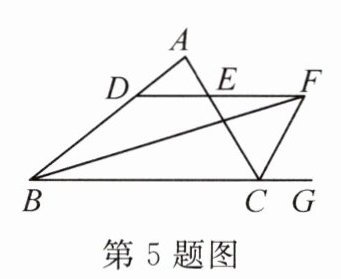 5.(2024・郑州新郑市月考)如图,/ABC的平分线BF与△ABC的外角/ACG的平分线相交于点F,过点F作 DF//BC交AB于点D,交AC于点E.若BD=7cm,CE=5cm,则DE的长为。