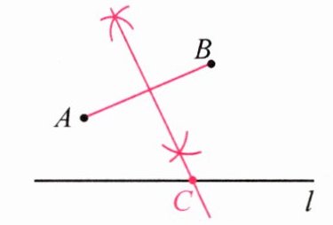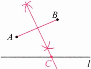 6.如图,某地由于居民增多,要在公路l上增加一个公共汽车 station,A,B是路边两个新建小区,这个公共汽车站建在什么位置,能使两个小区到车站的路程一样长?在图中标出它的位置.
