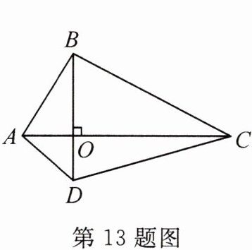 13. (2024·郑州巩义市期末)对角线互相垂直的四边形叫做“垂美”四边形. 现有如图所示的“垂美”四边形ABCD,对角线AC,BD相交于点O. 若AD=2,BC=4,则AB² + CD²=