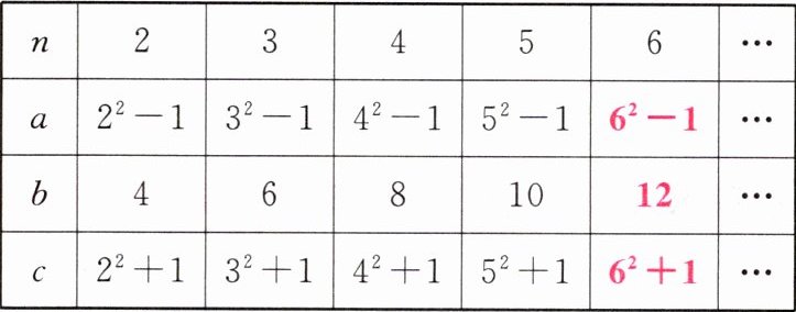 (2)用含自然数n(n>1)的代数式表示a,b,c,则a= ,b= ,c= ;