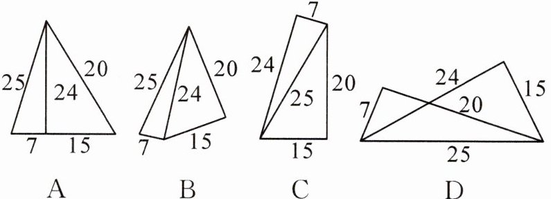 13. 有五根小木棒,其长度分别为7,15,20,24,25,现将它们摆成两个直角三角形,其中正确的是(