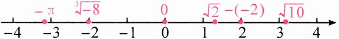 1. 把下列实数表示在数轴上,并比较它们的大小(用“<”连接$). -(-2),\sqrt{10},0,\sqrt[3]{-8},-π,\sqrt{2}.$