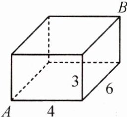 12.华师二附中校本经典题 如图所示的是一块长、宽、高分别是6 cm,4 cm,3 cm的长方体木块,一只蚂蚁要从长方体木块的一个顶点A处,沿着长方体的外表面到长方体上的另一个顶点B处吃食物,求它需要爬行的最短路径长.