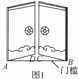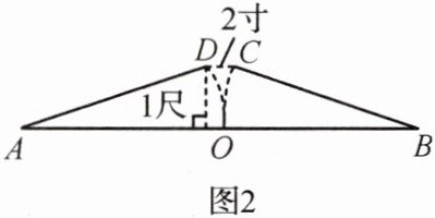10.石家庄外国语校本经典题 《九章算术》是古代东方数学代表作,书中记载:今有开门去阃(读kǔn,门槛的意思)一尺,不合二寸,问门广几何?题目大意是:如图1,2(图2为图1的平面示意图),推开双门,双门间隙CD的距离为2寸,点C和点D距离门槛AB都为1尺(1尺=10寸),则AB的长是