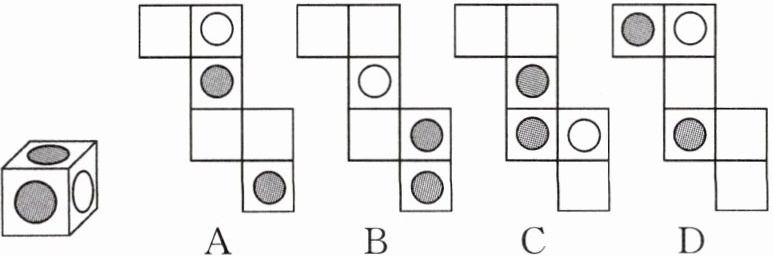5. 下列四个平面展开图中,是由左图中的正方体纸盒展开得到的是()
