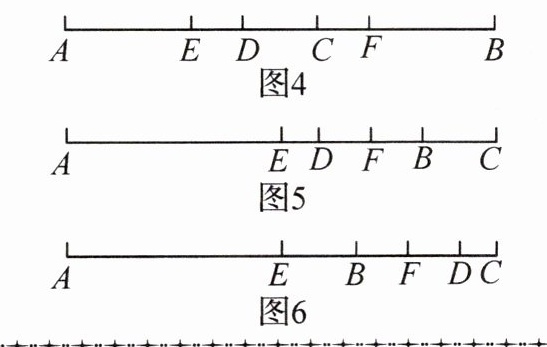 ②如图4,5,6,当点C在点D右侧时,EF=$\frac{1}{2}$(AB−CD)。