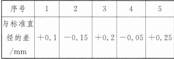 17. 某汽车配件厂生产一批圆形零件,从中抽取 5 件样品进行检验,比标准直径长的毫米数记作正数,比标准直径短的毫米数记作负数,检查记录如下: