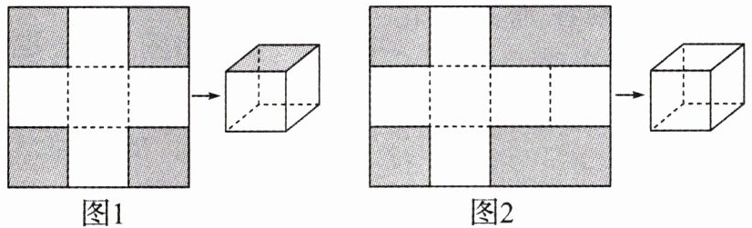 小亮用一张长方形纸板按如图2所示的方式先在纸板四角剪去两个同样大小的小正方形和两个同样大小的小长方形,将剩余部分折合起来可以制作一个有盖的正方体纸盒(纸板厚度及接缝处忽略不计).