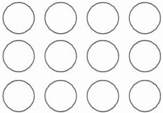 (6) 如右图,如果将其中的$\frac{3}{4}$涂成红色,那就需要将()个圆片涂红;如果拿走4个圆片,将剩下圆片的$\frac{3}{4}$涂成红色,那就需要将()个圆片涂红。