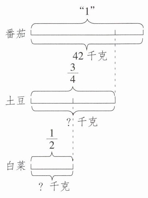 (4) 土豆:$42×\frac{3}{4}$;白菜:$42×\frac{3}{4}×\frac{1}{2}$
