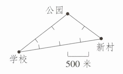 | 公园→新村 | 南偏东$45^{\circ}$ | 500米 | 3分 |