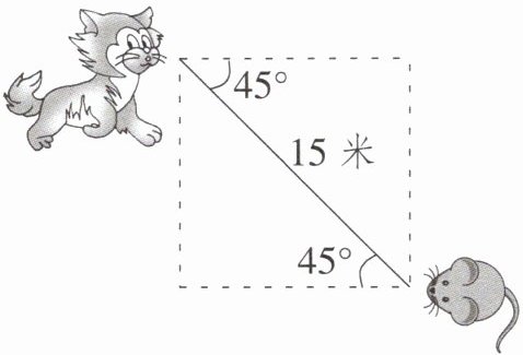 (7) 猫在老鼠( )偏( )的方向上,距离老鼠( )米。如果老鼠不动,猫朝( )偏( )的方向跑( )米,就能抓住老鼠。