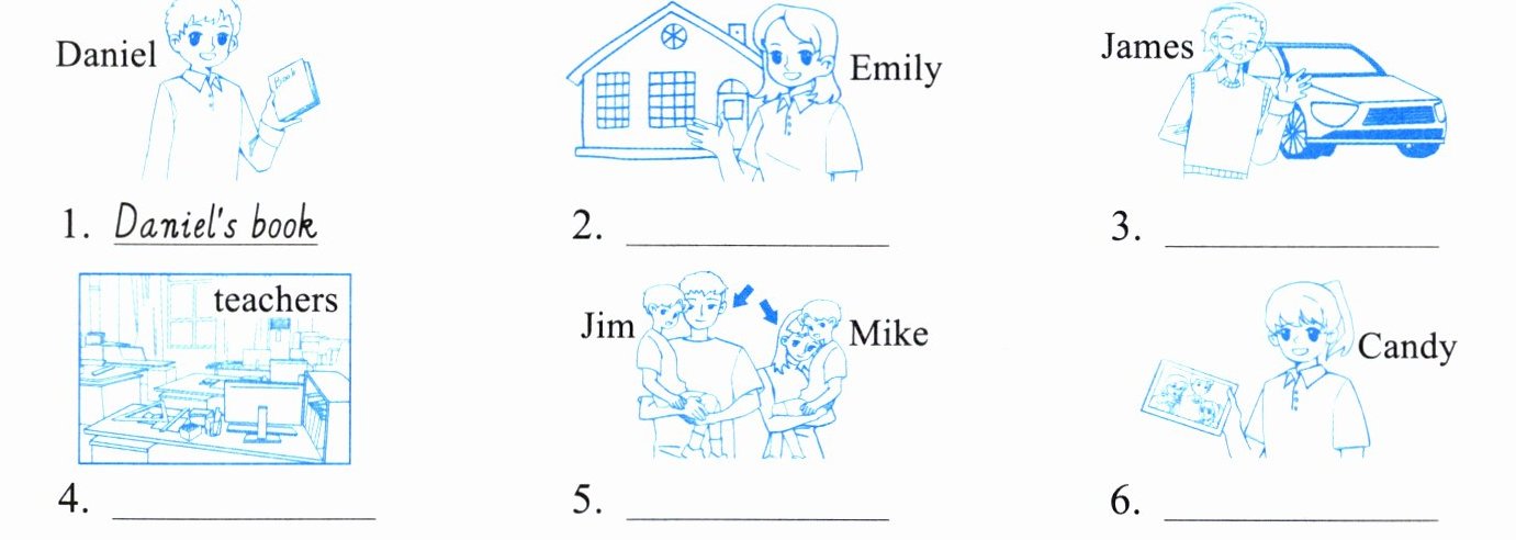 Ⅰ. Look at the pictures and write the correct expressions with possessives. 看图,用名词所有格写出正确的短语。