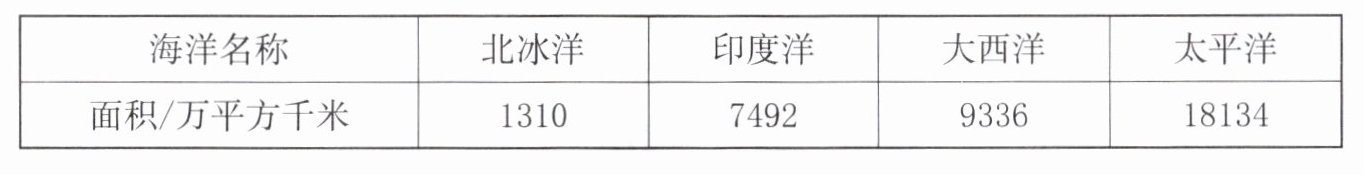 问题:大西洋的面积大约是北冰洋面积的多少倍?(结果保留整数)