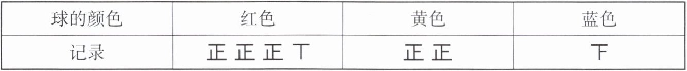 (2)如果已知这3种颜色的球分别有1个、5个、13个,根据上面的数据,你认为红、黄、蓝3种颜色的球可能分别有多少个呢?把你的想法填在下面的表格内。