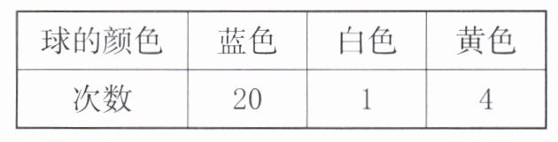 2. 同学们做摸球游戏:将一些除颜色不同外其他都相同的球放在一个不透明的盒子中,从中任意摸出一个球,记录它的颜色后放回,摇匀后再摸,共摸了25次,结果如右表。