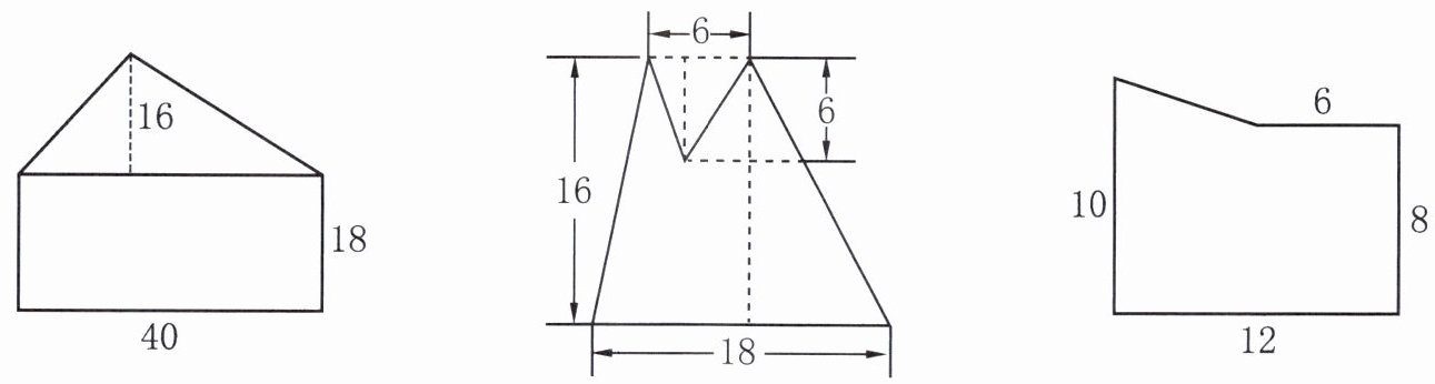 1. 40×18 + 40×16÷2 = 720 + 320 = 1040(dm²)