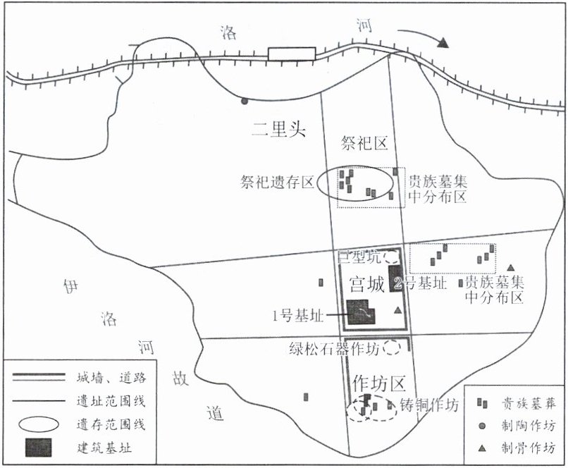材料一中从“天下为公”到“天下为家”的转变表明禅让制被世袭制取代。(2分)材料二中以道路划分的宫城区、作坊区、祭祀区等组成的九宫格式布局结构,以及与之相匹配的大型宫殿,说明夏朝二里头都城规划建设已经相当成熟。(2分)材料二中的贵族墓葬和材料三中做工精美的青铜礼器,反映了夏朝的阶级分化和等级界限。(2分)这都表明夏朝已有比较成熟的国家形态,具有较高的文明发展水平。(2分)