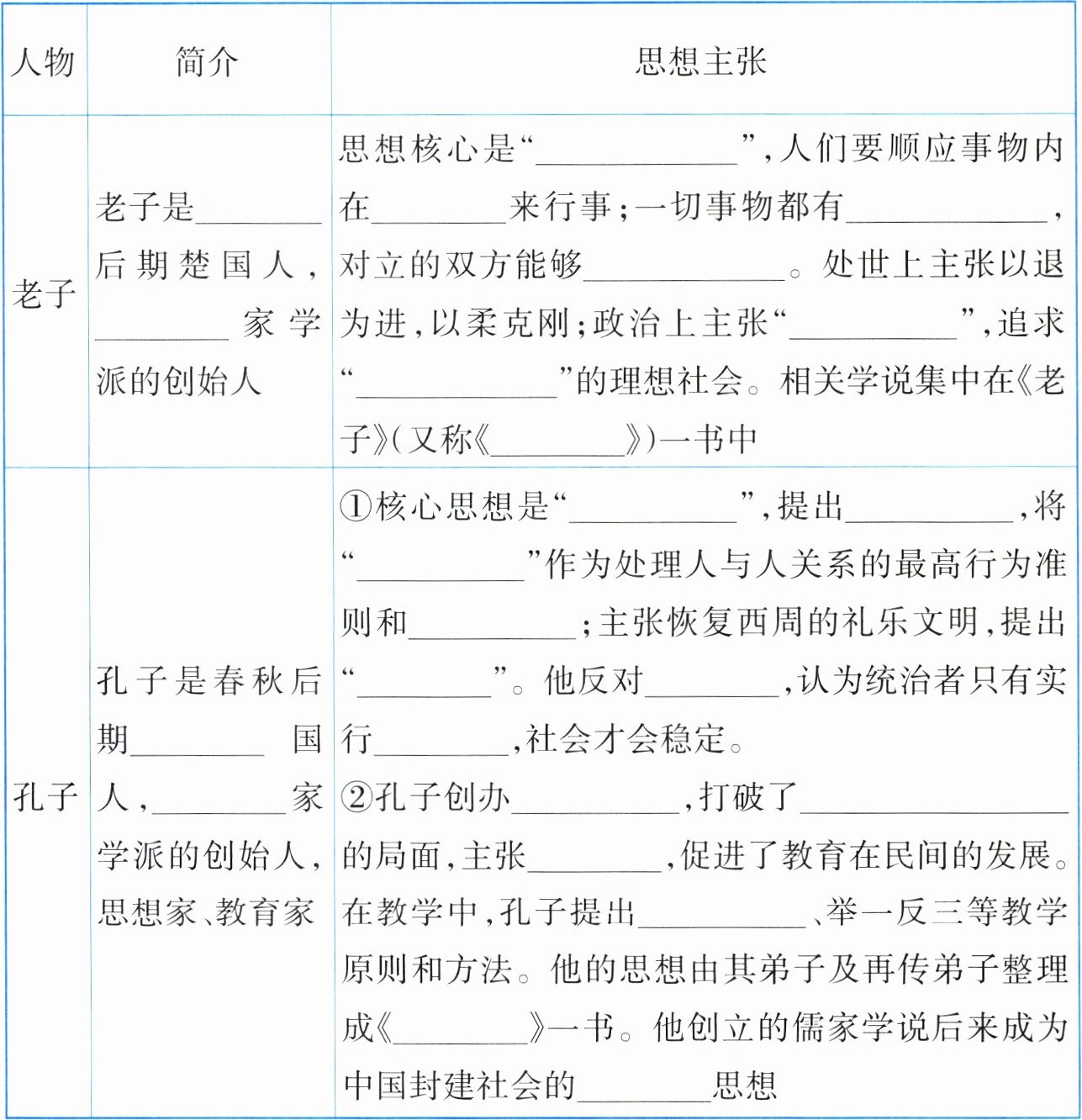 1. 阅读教科书,完成以下表格的填空。