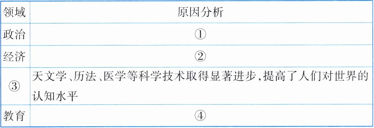 (2) 请补充材料二中①②③④所代表的内容(补充在下方),完成对“争鸣原因”的探究。(4分)