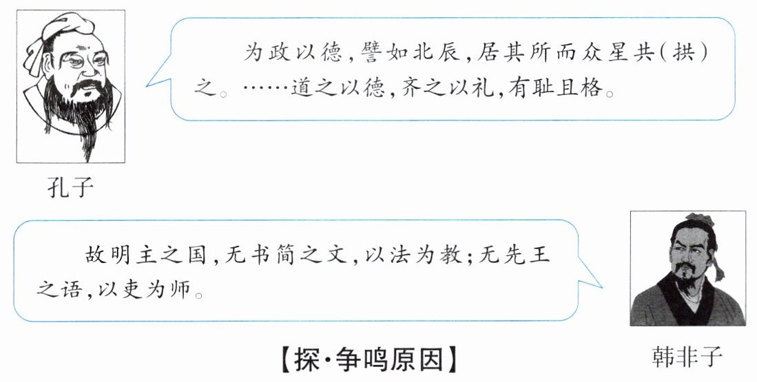(1)不同:孔子主张“为政以德”,要求统治者爱惜民力,体察民意。韩非子主张治国要靠法令、权术和威势,以法治国,树立君主的权威,建立中央集权专制统治。(2分)举例:墨家:主张“兼爱”“非攻”,要求人们互爱互利,反对各国相互攻伐兼并、残害生命,同时要选贤能的人治理国家,批判奢侈生活,提倡节俭。道家:治国要顺应自然和民心等,主张“无为而治”。(2分)