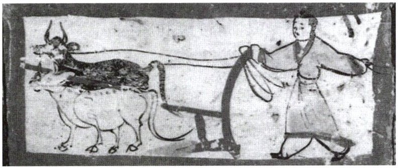 9.下图所示为甘肃嘉峪关魏晋墓砖画中的一部分,名为《犁耕图》。该图反映