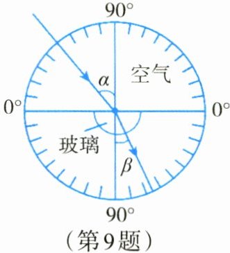 9. 如图所示,某同学利用光具盘探究光从空气斜射入玻璃中时的光路,经过多次实验,记录了如下数据:
