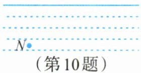 10. 如图所示,$N点是人眼在M$处看到的河中鱼的位置。