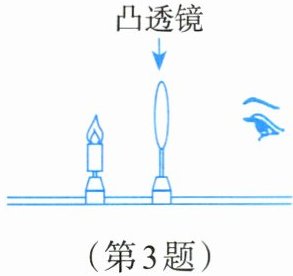 3. 在探究凸透镜成像特点的实验中,某同学将蜡烛放在离凸透镜1倍焦距内,如图所示,烛焰在凸透镜左侧成一个正立、放大的像。
