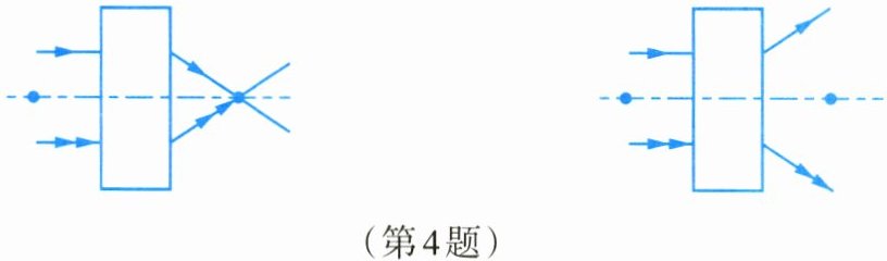4. 请根据下图中已画出的入射光线和折射光线,在方框内画出合适的透镜。