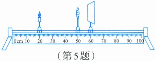 5. 在探究凸透镜成像规律的实验中,当蜡烛、凸透镜和光屏的位置如图所示时,光屏上承接到烛焰清晰的像。保持凸透镜的位置不变,则( )。