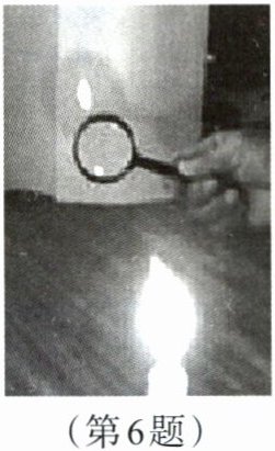 6. 如图,某同学在家中做凸透镜成像实验,墙上出现一个倒立、缩小、清晰的像。下列说法正确的是( )。