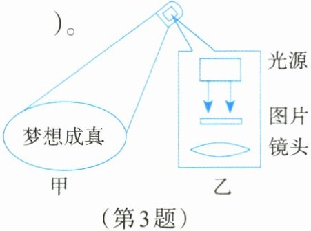3.如图甲所示是公共场所的宣传投影灯,装在高处的投影灯照在地面上出现图案,其内部结构如图乙所示。下列说法正确的是( )。