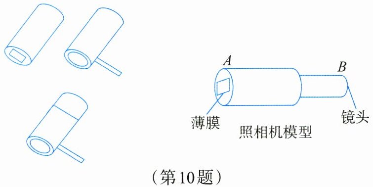 10.如图,在自制照相机模型时,用硬纸板做两个粗细接近的纸筒,使一个纸筒刚好能够套入另一个纸筒内,并能前后滑动。
