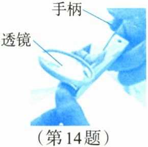 14.如图所示为某同学送给爷爷的一款带有透镜的指甲刀,方便爷爷剪指甲。关于此款指甲刀的说法正确的是( )。
