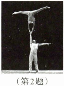 2. 如图所示,一名女技巧运动员支撑在另一名男技巧运动员手上。请分析: