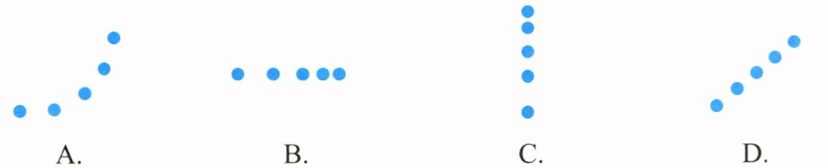 4. 利用每秒曝光10次的照相装置拍摄到四个物体运动的频闪照片(图中的点表示物体)。以下选项中,可能受平衡力作用的物体是( )。