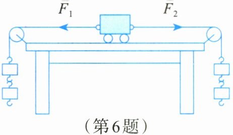 (2) 保持两端钩码的质量相等,用力把小车扭转一个角度,使拉力$F_1$和$F_2$不在同一直线上,松手后,观察到小车发生转动。当小车重新恢复到原来的静止状态时,拉力$F_1$和$F_2$作用在同一直线上。由上述实验可知:作用在同一物体上的两个力,如果大小______,方向______,作用在______上,这两个力就彼此平衡。