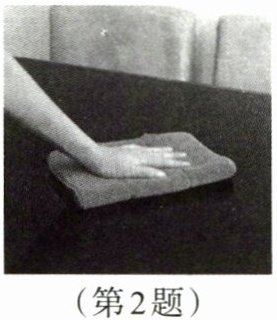 2. 如图是某同学用抹布做清洁时的情景。该同学向左擦拭桌面时,抹布受到桌面的摩擦力方向是______。为了擦干净桌面上一小团“顽固”的污渍,他加大了用力,这是为了______摩擦。