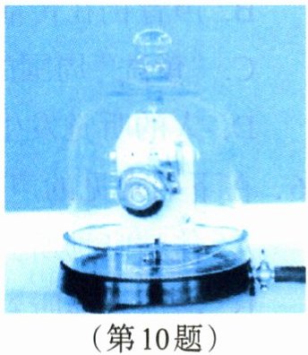 10.图示为探索声音在空气中传播的实验装置。实验时,先给放在密封玻璃罩内的电铃通电,使其发声。