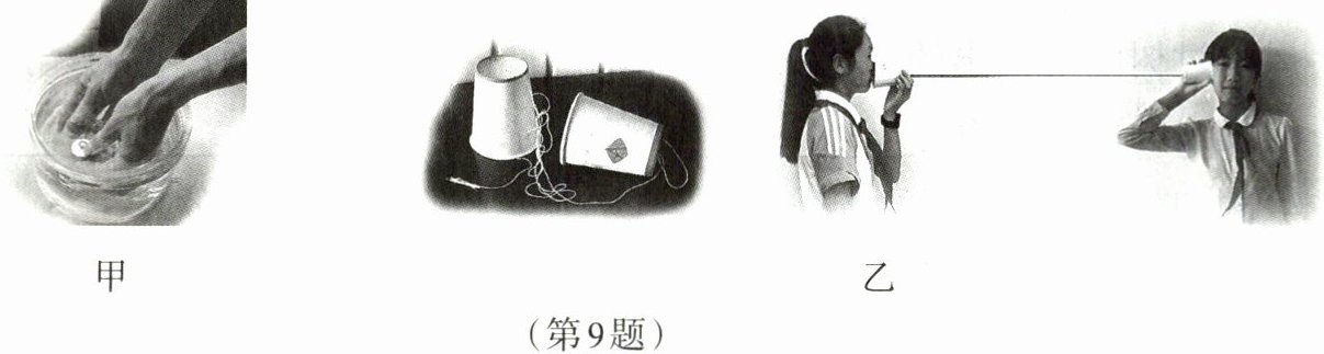 9.图甲为在水中撞击铁块的活动,图乙为自制“土电话”的活动。